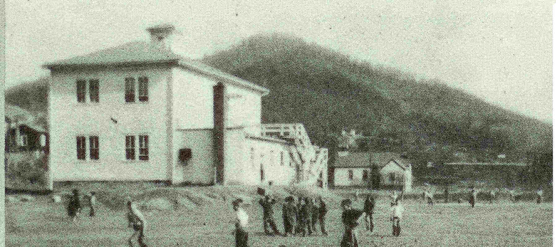 Looking from the back of the school, the church was across the street while in the distance, the gray structure to the right is the Tipple.Thanks to my Mom and the Whitby 1954 grade school book, I was able to get this picture as well.